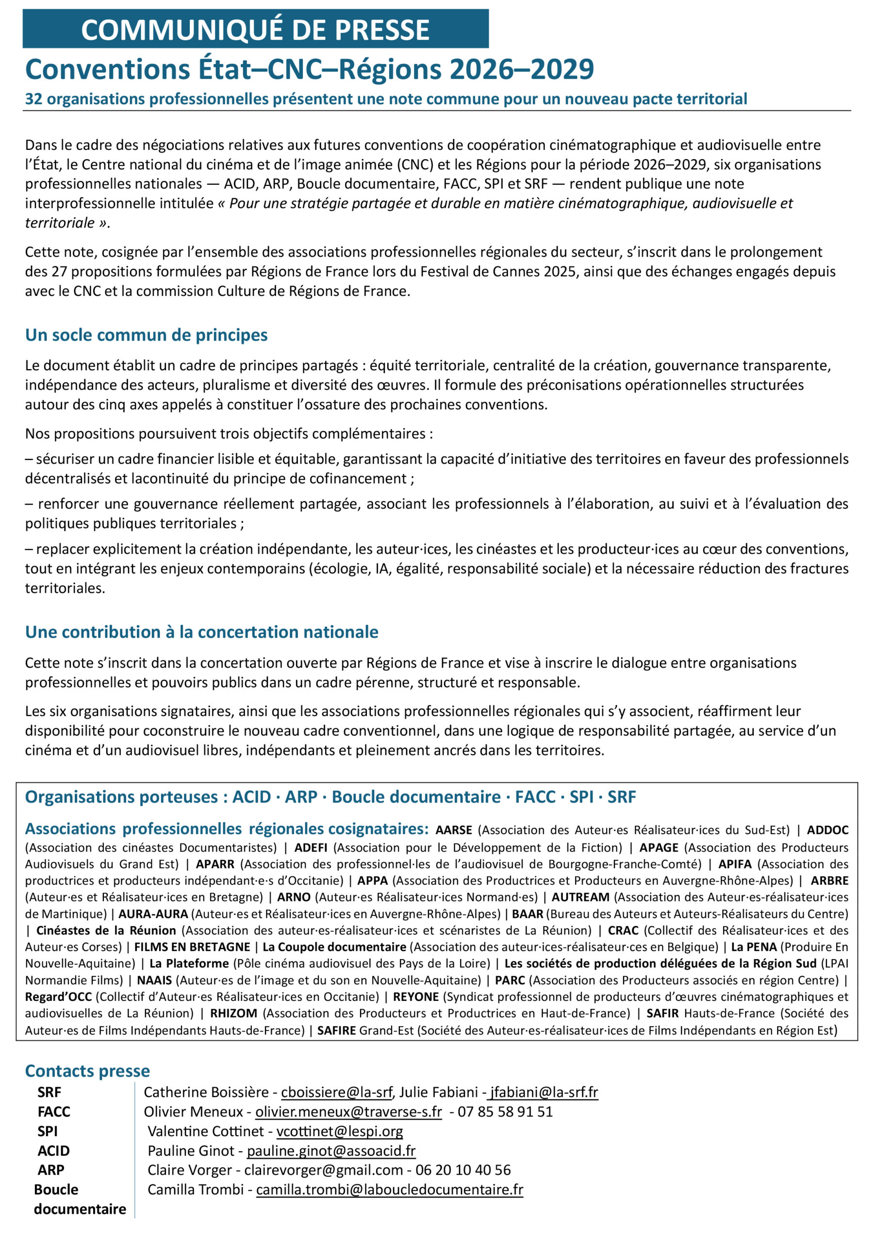 Groupe de Travail #3 – Relations Extraterritoriales (associations régionales, CNC, SPI…)